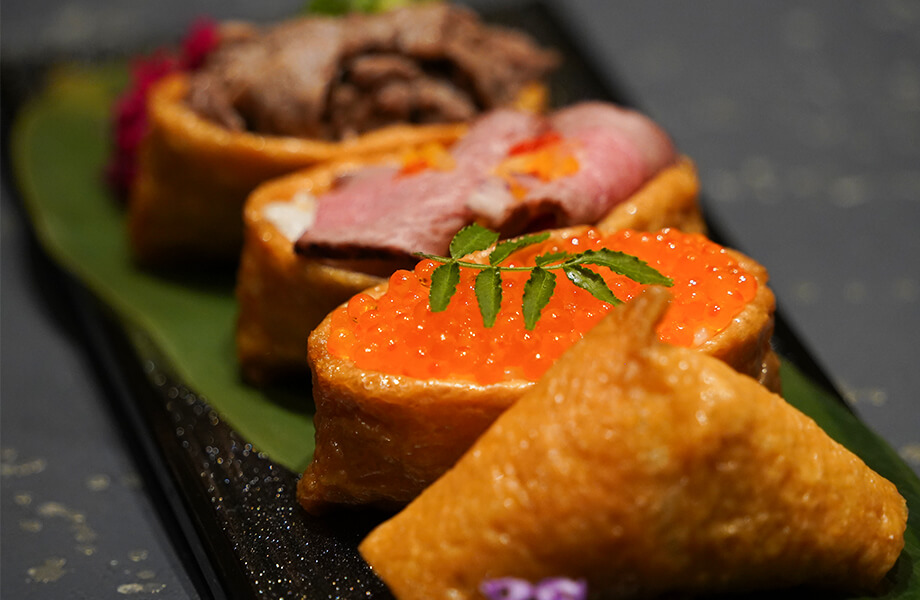 さらに、お土産として豪華食材をのせた逆さいなり「SAKAI NO INARI(さかいのいなり)」もご提供いたします。